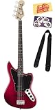 Squier by Fender Vintage Modified Jaguar Bass Special Bundle with Strap, Pick Card, and Polishing Cloth - Rosewood Fretboard, Crimson Red Transparent Details & Features