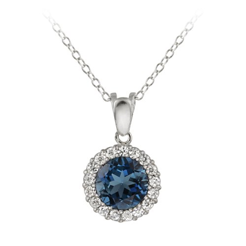 Cheapest Sterling Silver Round London Blue Topaz with Cubic Zirconia Accent Pendant, 18"