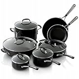 Calphalon , Durable, stylish and nonstick, this bold 10-piece set is simply perfect for home cooks who want it all. black porcelain enamel exterior comfortable silicone handles stay cool on the stovetop nonstick interior for easy release and cleanup oven safe to 400 degrees 10-piece set includes: 8" omelette pan 10" omelette pan 1-quart covered saucepan 2-quart covered saucepan 3-quart covered saut� � pan 6-quart covered stock pot BONUS 12" hard anodized all-purpose pan Manufacturer's 10-year warranty. Hand wash. Simply Calphalon 10-piece porcelain enamel-coated aluminum set is imported. Available in colors: Black. Available from JCPenney. ...